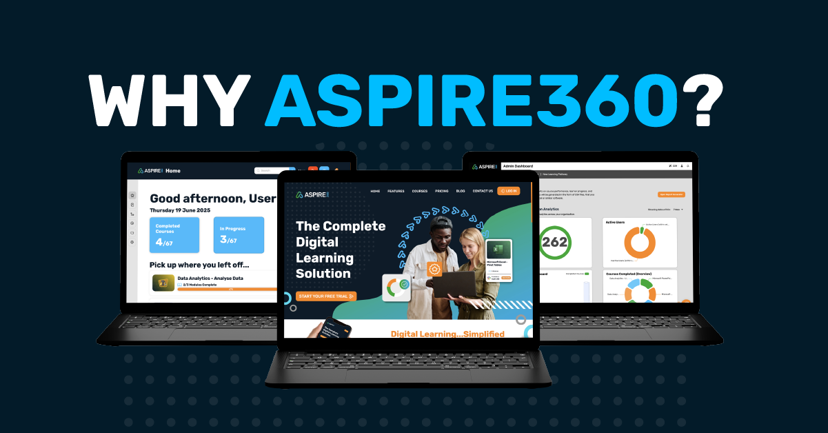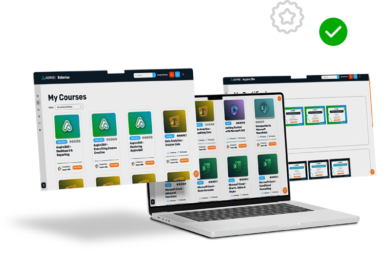You choose the content you need, whether digital skills, compliance or onboarding, and deliver it through a consistent learner experience. The built‑in authoring tool lets you create bespoke courses for your organisation, keeping everything in one place. Aspire360 gives you a flexible LMS with optional content support, designed to fit the way you train your teams.